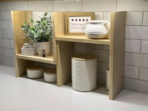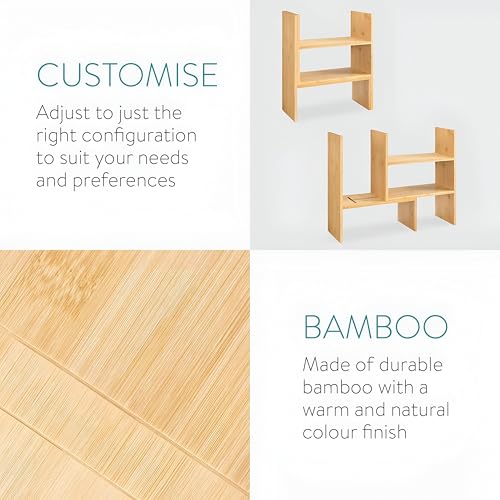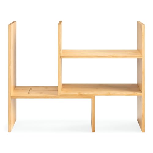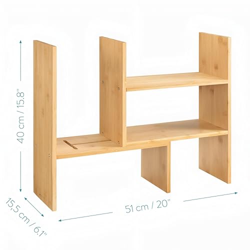 Generic - منظم مكتب للمطبخ - حامل قابل للتعديل من الخيزران مع رفين للتوابل والاواني والاجهزة الصغيرة، 51 × 40 × 15.5 سم، مقاوم للماء.
