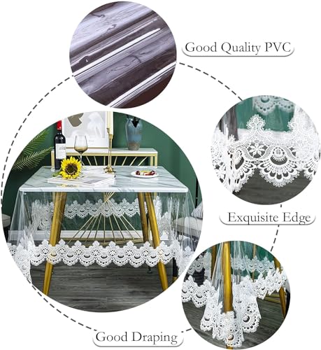 Generic - مفرش للسفرة والمطبخ من بلاستيك PVC عالي التحمل مقاوم للماء والزيت والبقع مع حواف الدانتيل الأبيض غطاء طاولة شفاف لطاولة الطعام وطاولة القهوة والمكتب مستطيل 152×152 CM