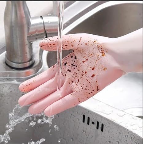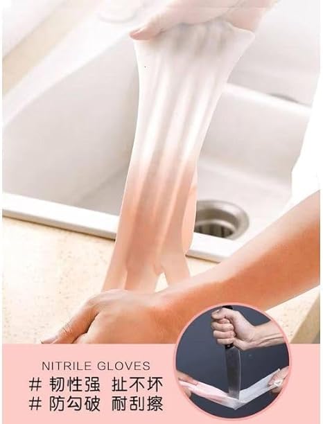 Generic - جوانتي تنظيف أطباق المطبخ شفاف ومقاوم للماء بأكمام طويلة من المطاط واللاتكس، من ضمن الأدوات المنزلية المقاومة للانزلاق والاهتراء (ألوان متعددة)