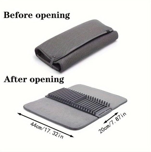 Generic - بساط تجفيف اطباق المطبخ - مصفاة اطباق من المايكروفايبر مع رف للطبق، وسادة تجفيف ماصة لسطح الطاولة، حصيرة حوض المطبخ المحمولة القابلة للطي، لوازم المطبخ المنزلية 44 × 20 سم