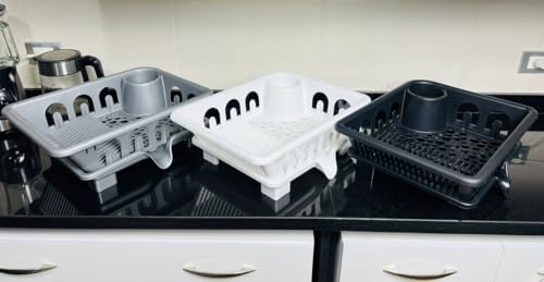 Generic - رف تجفيف الأطباق المطبخي، حامل أدوات المائدة متعدد الطبقات، بلاستيك أبيض ورمادي، تصريف وتخزين الأواني