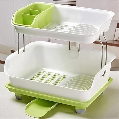Generic - رف اطباق للمطبخ - منظم تجفيف مزدوج الطبقات متعدد الوظائف بسعة كبيرة مع هيكل من بلاستيك البولي بروبيلين وصينية تصريف للاستخدام اليومي (الخيار 1)
