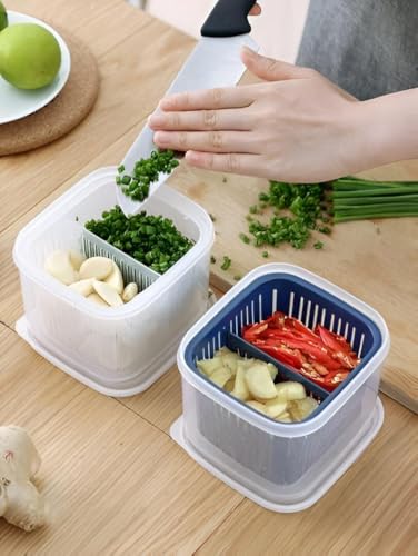 - هذا المنتج عبارة عن مجموعة من صندوقين لتخزين الخضروات مصممين للثلاجة، تعمل كمنظم ثلاجة مع فواصل ونظام متعدد الأغراض يحافظ على المنتجات مرتبة بدقة وسهولة الوصول إليها، مما يجعل من السهل فصل العناصر المختلفة داخل التخزين البارد وعملية إعداد الوجبات اليومية.