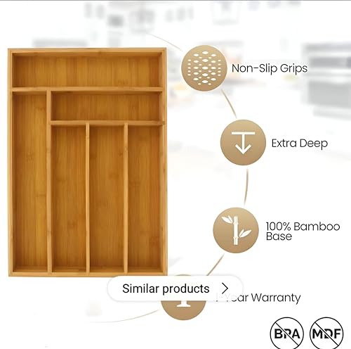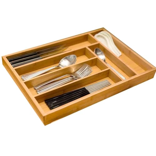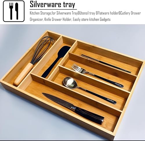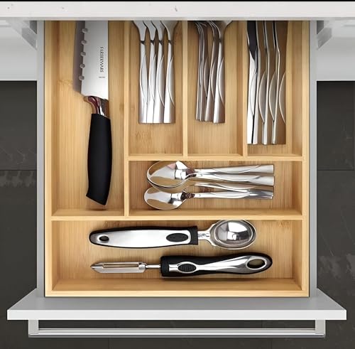 Generic - فواصل المطبخ، نظام تقسيم متعدد الاستخدامات من البامبو لأدراج المطبخ، توفر مساحات تخزين قابلة للتخصيص لأدوات المائدة وأدوات المطبخ الصغيرة والأواني، مما يعزز التنظيم وسهولة الوصول