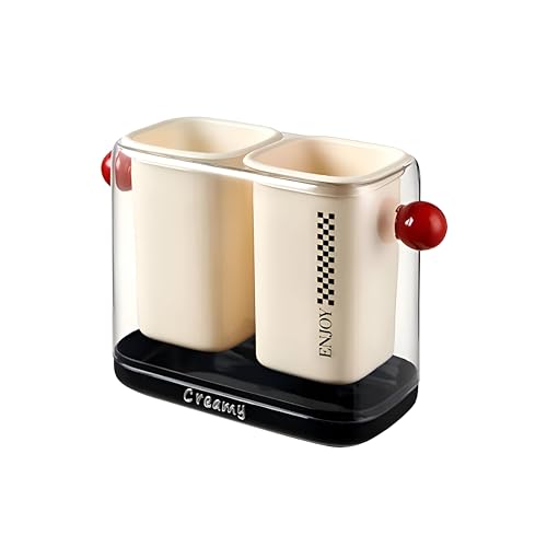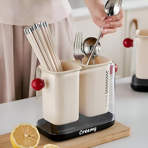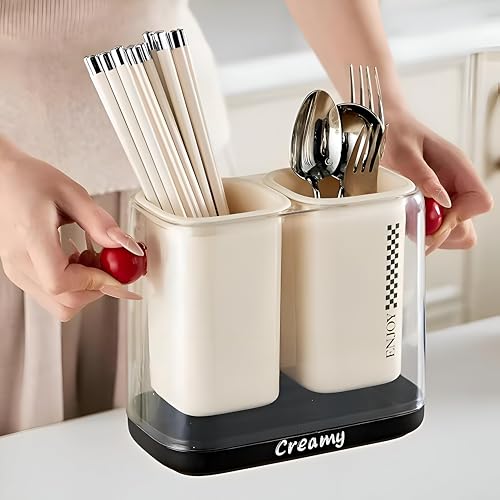 Generic - صفاية مطبخ، منظم معالق وشوك من الاكريليك بخانتين مع صينية تصريف قابلة للإزالة، أكواب حمل أدوات المائدة قابلة للفصل، هيكل شفاف أنيق لإضافة راقية واستخدام صحي