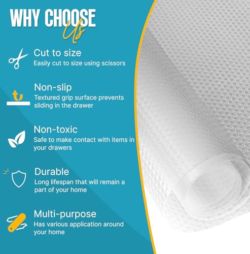 Generic - بطانات أدراج المطبخ من لينداز اسينشالز (44.5 سم × 5.0 م) - بطانات دولاب المطبخ غير قابلة للانزلاق وبطانات الثلاجة التي تحمي من الانسكابات - بطانات رفوف متعددة الاستخدامات لدواليب المطبخ