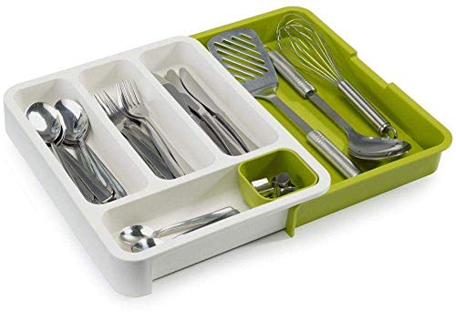 Other - منظم أدراج المطبخ للملاعق، بتصميم بسيط، باللون الأبيض الباهت، مصنوع من البلاستيك، قابل للتعديل