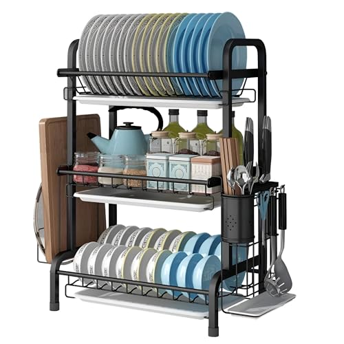 generic - رف تجفيف المطبخ - منظم اطباق انيق من الستانلس ستيل من 3 طبقات لتجفيف الاطباق وتنظيم المطبخ، تصميم اوروبي اسكندنافي، حجم قياسي كما هو موضح