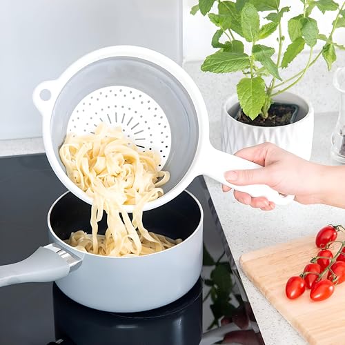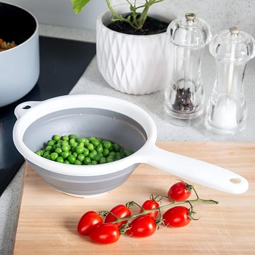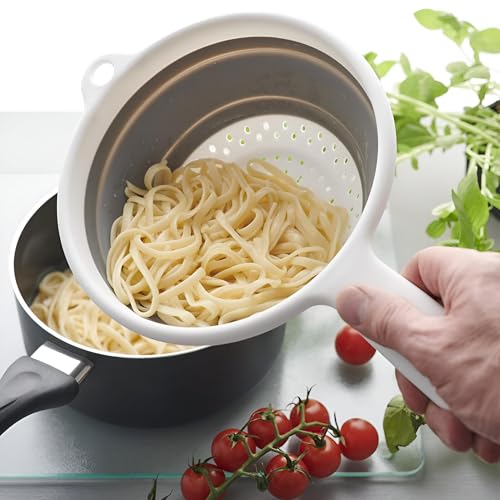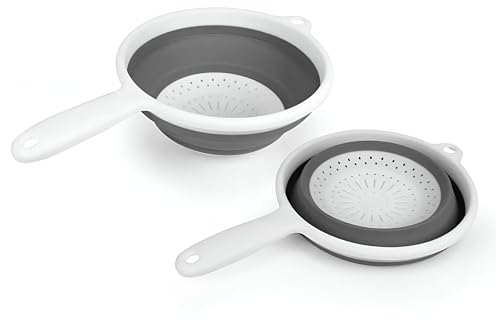 Generic - مصفاة بوب اند ستور قابلة للطي مقاس 24 سم من كيتشن اسينشيال، تصميم موفر للمساحة باللونين الابيض والرمادي، مثالية للشطف والتصريف (قطعتين)