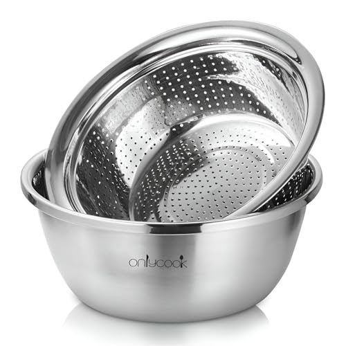 - تتضمن مجموعة المصفاة المصنوعة من الفولاذ المقاوم للصدأ 3 في 1 متعددة الاستخدامات هذه مصفاة شبكية دقيقة ووعاء كبير ومقشرة جوليان. مثالية للغسيل والشطف والبشر وتحضير الخضروات والفواكه وغيرها من الأطعمة. تساعد المجموعة في إعداد الطعام للسلطات والمعكرونة وأكثر من ذلك.