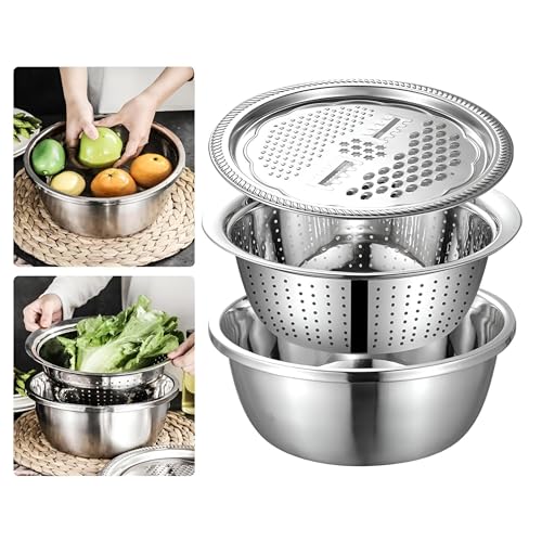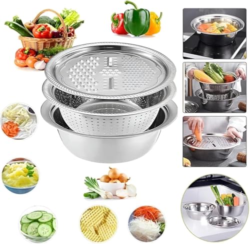 Generic - مجموعة خلاط ومبشرة ومصفاة من الفولاذ المقاوم للصدأ 3 في 1 لتحضير المعكرونة والخضروات والأرز بدون مجهود من كيتشن اسينشالز