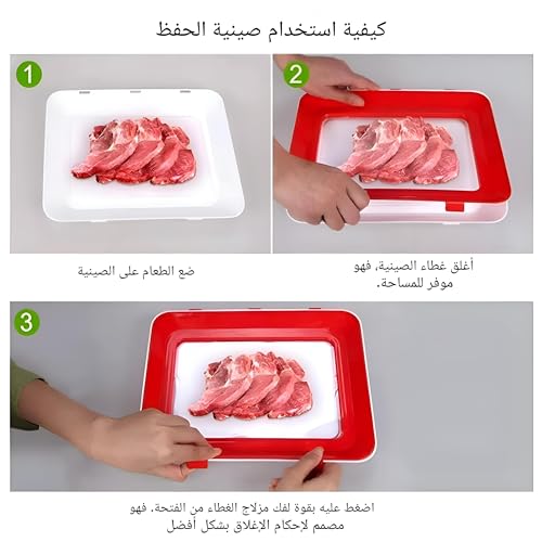 - صينية تخزين الطعام هذه فعالة للغاية في الحفاظ على بقايا الطعام والمكونات في المنزل، مما يضمن النضارة والسلامة للاستخدام اليومي في مطبخك وثلاجتك.