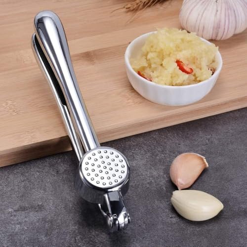 Generic - هراسة ثوم للمطبخ من الستانلس ستيل - هراسة ثوم يدوية شديدة التحمل، مقبض مريح متين، مقاومة للصدا، مفرمة ثوم امنة للاستخدام في غسالة الصحون لسهولة الطهي