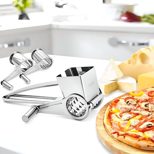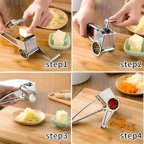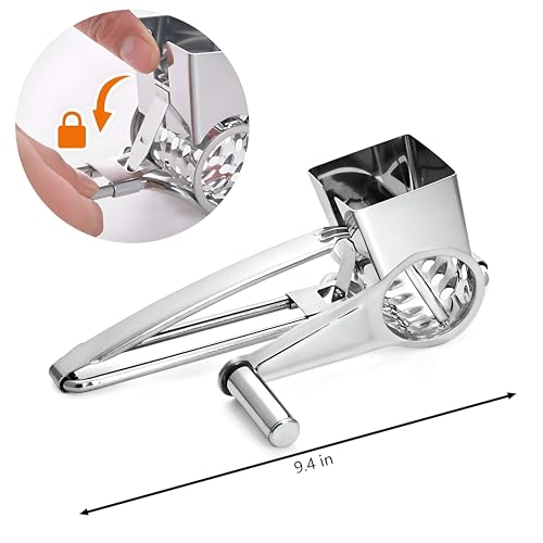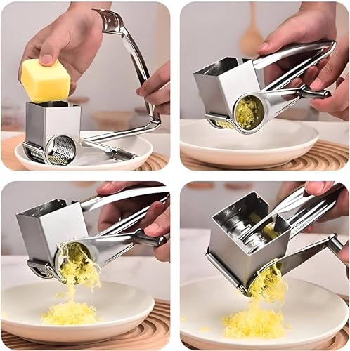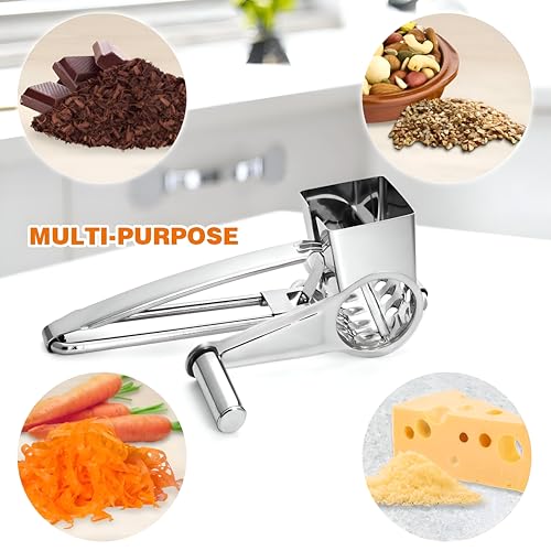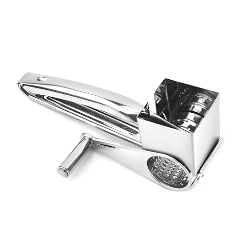 Generic - مبشرة مطبخ يدوية دوارة للجبن والخضروات بمقبض مريح لسهولة الاستخدام والتنظيف، مبشرة لجبن البارميزان والشوكولاتة بلون فضي