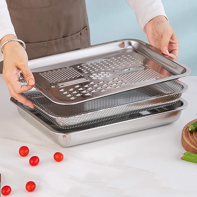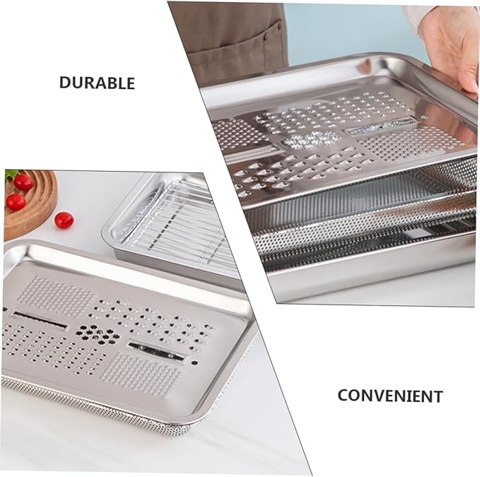 Generic - مبشرة مطبخ 3 في 1 من فولاذ مقاوم للصدأ، مكونة من صينية ومصفاة وقاطعة متعددة الأغراض لتقطيع الخضروات والجبن والجزر والتفاح وغسل الخضروات، آمنة في غسالة الأطباق