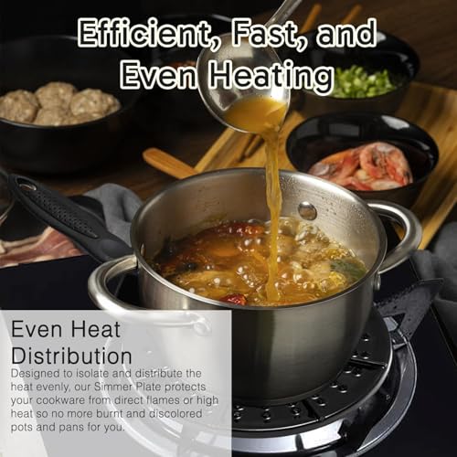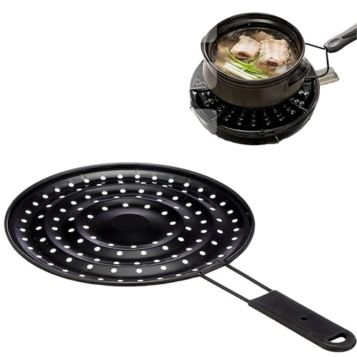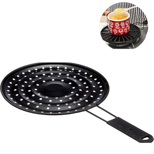 Generic - موزع حرارة للمطبخ لموقد الغاز والكهرباء – مثالي للأواني الفخارية، والطواجن، وأباريق الموكا، وأدوات الطهي - صفيحة توزيع حرارة للغلي على درجات حرارة مختلفة – مع مقبض آمن ومقاومة للحرارة – لون أسود