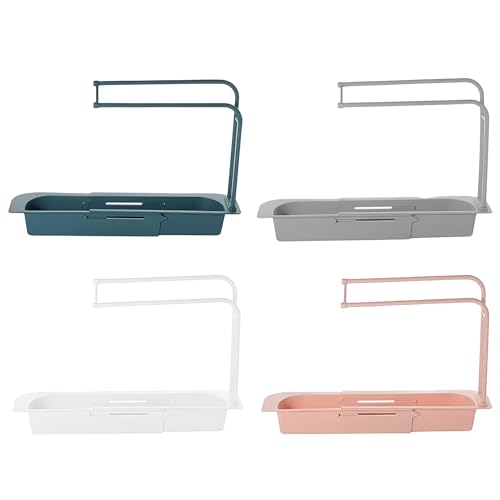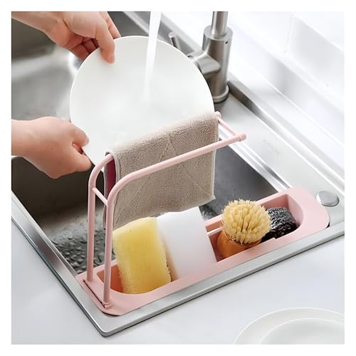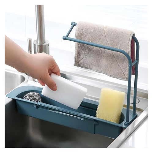 Generic - حوامل مطبخ – تخزين متعدد الاستخدامات على سطح الحوض مع قاعدة قابلة للإزالة لتجفيف الفوط أو قماش التنظيف، بتصميم مثقوب لتصريف الماء بسرعة، وعرض قابل للتعديل ليناسب أحواض مختلفة