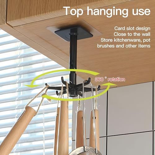 - يتميز كل خطاف مطبخ بتصميم قابل للدوران بزاوية 360 درجة يسمح بوضع مرن، مما يجعله مناسبًا لتعليق عناصر المطبخ المختلفة. مع توفر 6 خطافات، يلبي هذا المنتج بكفاءة جميع احتياجات التخزين في المطبخ.