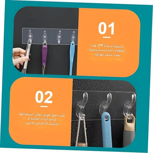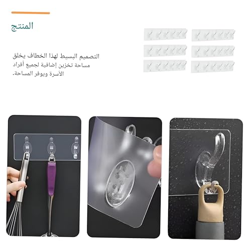 - شفافة وذات مظهر شفاف، تمتزج هذه الخطافات بسلاسة مع ديكور حمامك أو مطبخك. يساعد تصميمها في الحفاظ على جمالية نظيفة وبسيطة مع توفير حلول تعليق عملية وفعالة للاستخدام اليومي.