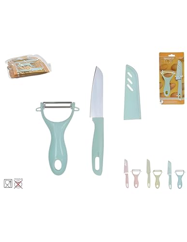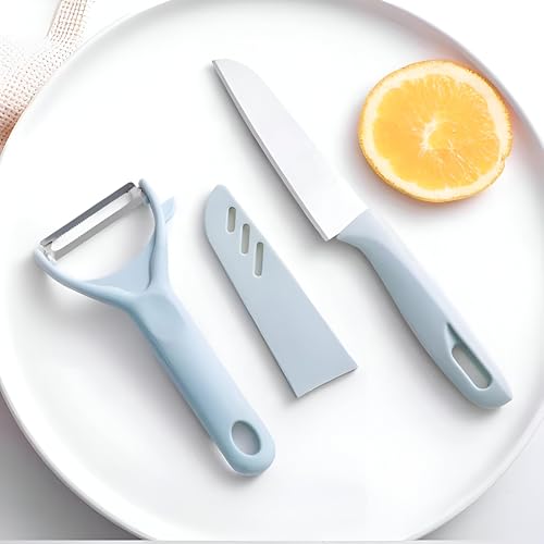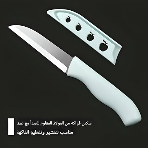 Generic - سكينة مطبخ - شفرة متينة من الفولاذ المقاوم للصدأ مع جراب واقٍ، حافة حادة للغاية لتقطيع دقيق، مقبض مريح، تتضمن مقشرة بطاطس متعددة الألوان