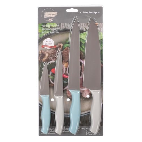 Generic - طقم سكاكين مطبخ من 4 قطع من الفولاذ المقاوم للصدأ، مقابض باللونين الأزرق والأبيض