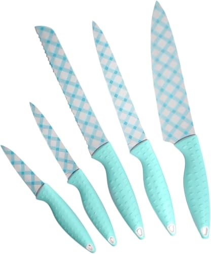 Generic - طقم سكاكين مطبخ بشفرات من الفولاذ المقاوم للصدأ ومقابض مريحة قوية للطبخ المنزلي والاحترافي، أدوات مائدة حادة للغاية للشيف، 5 قطع (لون أزرق)