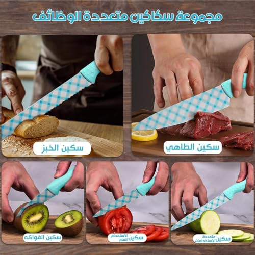 - قلل وقت التحضير إلى النصف: هذه المجموعة من سكاكين المطبخ (5 قطع) تقطع الطماطم والبصل واللحوم بشكل نظيف مع شفرات مصنوعة من فولاذ مقاوم للصدأ عالي الجودة، مما يمنحك تقطيع سريع ومتساوي لإعداد الوجبات اليومية واحتفالات نهاية الأسبوع.