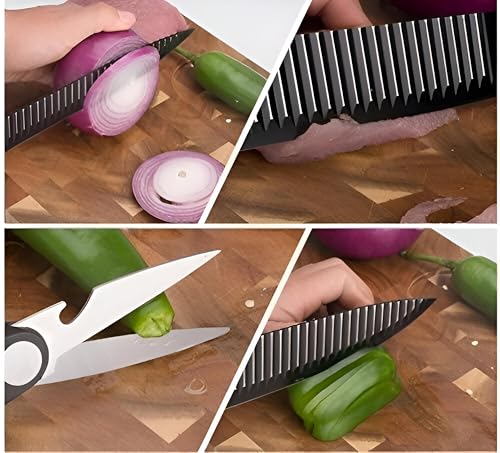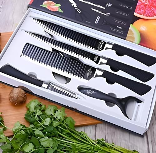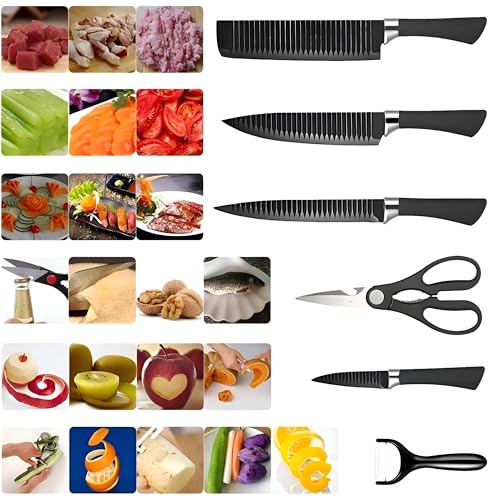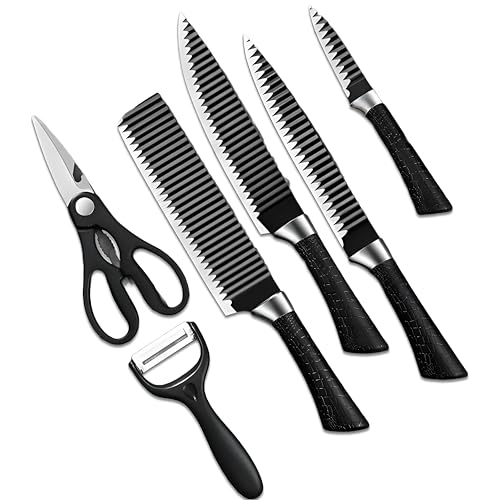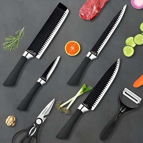 Generic - مجموعة سكاكين مطبخ احترافية بمقبض مانع للانزلاق لتقطيع سهل في المطابخ والمطاعم المنزلية، تتضمن مقشرة ومقص للشيف، 6 قطع