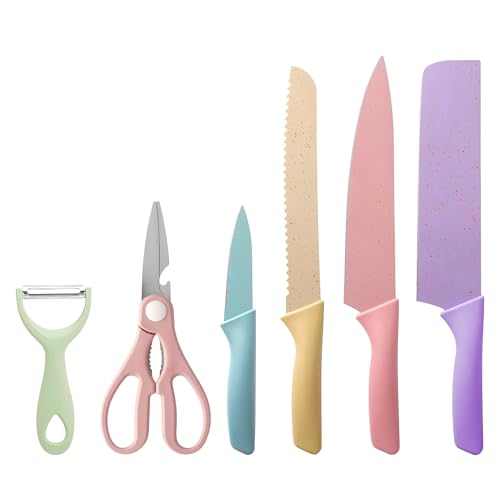 Generic - سكاكين المطبخ، مجموعة أدوات مائدة ملونة زاهية مع طلاء مقاوم للالتصاق، للطهاة المحترفين والطهاة بالمنزل، شفرات متينة في صندوق صغير لسهولة التخزين - 6 قطع