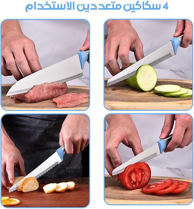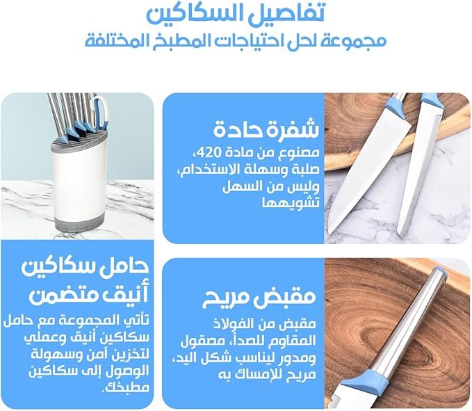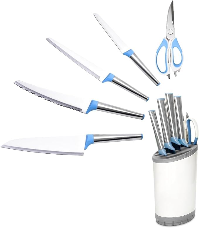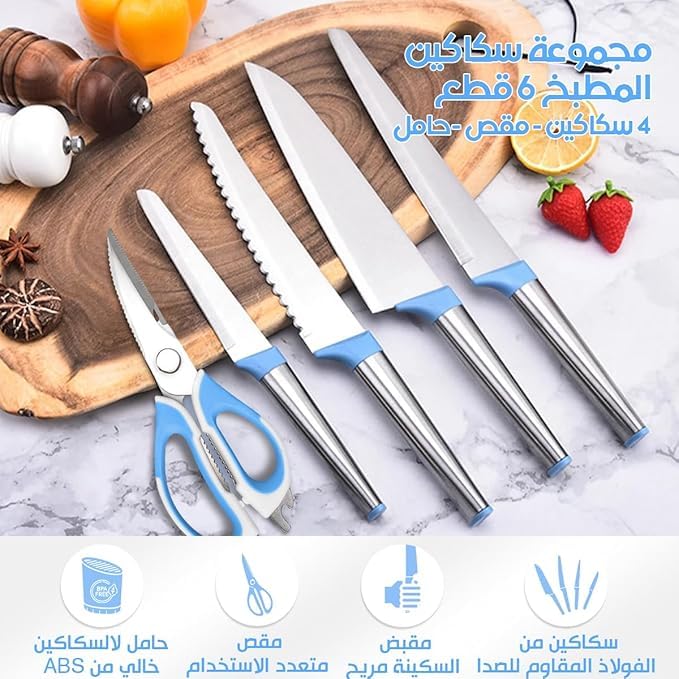 - مجموعة كاملة من 6 قطع - تتضمن سكاكين مطبخ أساسية ومقص متين وحامل سكاكين أنيق للتخزين المريح وسهولة الوصول.