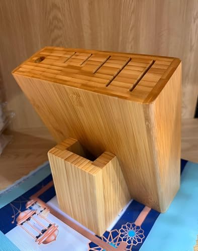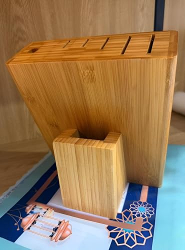 - حامل السكاكين متعدد الفتحات هذا مصنوع من الخيزران المتين، مما يجعله إضافة مرنة وطويلة الأمد لمطبخك يقاوم الأوساخ وسهل التنظيف، مما يضمن النظافة بسهولة، كل ذلك مع توفير المساحة والحفاظ على سكاكينك منظمة بكفاءة.