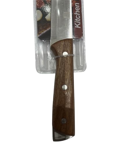 Generic - سكين مطبخ بمقبض خشبي (الطول: 18) طبق بطول 18 سم لتقطيع اللحوم والخضروات 14.4 سم