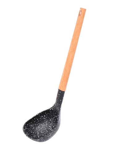 Generic - مغرفة مطبخ بمقبض خشبي، نمط اسود منقط، ملعقة طبخ بمقبض طويل