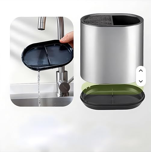 - تصميم مكون من 4 أقسام مع نظام تصريف: يتميز بـ 4 أقسام منفصلة لتنظيم الملاعق والشوك والسكاكين والأواني الصغيرة بشكل أنيق، مع فتحات تصريف في الأسفل للحفاظ على الأواني جافة ومنع تراكم المياه.