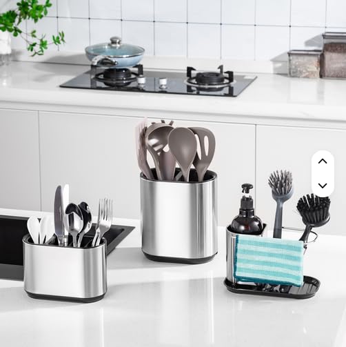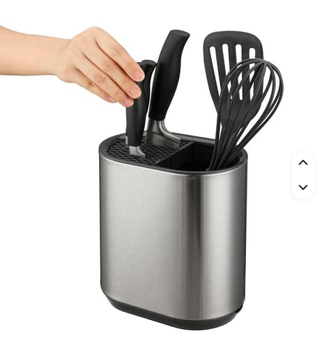 Generic - حامل ادوات مطبخ كبير من الستانلس ستيل، مصفاة ملاعق وسكاكين متعددة الاقسام، مصفاة ادوات مع نظام تصريف، منظم لسطح الطاولة