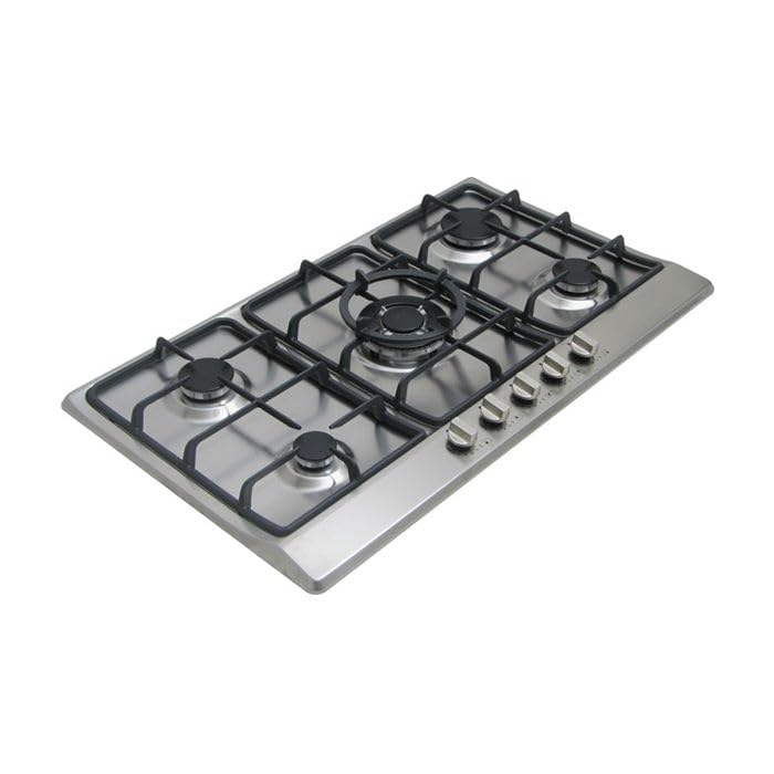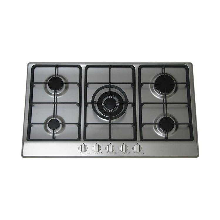 - تصميم فاخر: موقد غاز من الفولاذ المقاوم للصدأ مقاس 90 سم يتميز بـ 5 شعلات قوية مع شبكات من الحديد المصبوب لمتانة فائقة وتجربة طهي احترافية.
