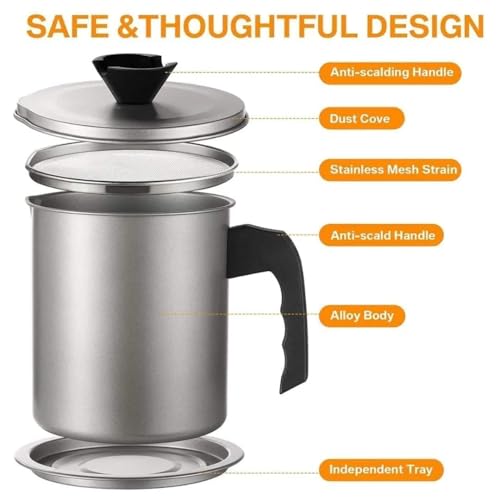 - السعة: وعاء تخزين الزيت سعة 1 لتر مع مصفاة شبكية دقيقة مثالية لتصفية وتخزين زيت الطهي بعد القلي.