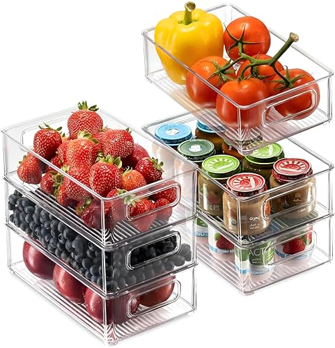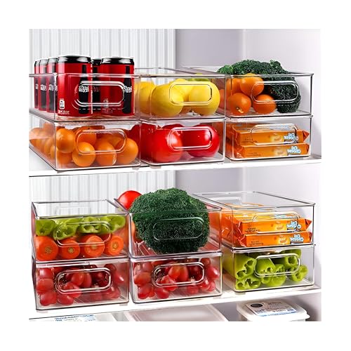 - يوفر منظم الثلاجة الأكريليك هذا حل تخزين متعدد الاستخدامات مع حاويات شفافة قابلة للتكديس تتميز بمقابض جانبية لسهولة الحمل، مما يجعله مثاليًا لتنظيم الثلاجة أو المطبخ أو المخزن مع توفير رؤية واضحة للمحتويات.