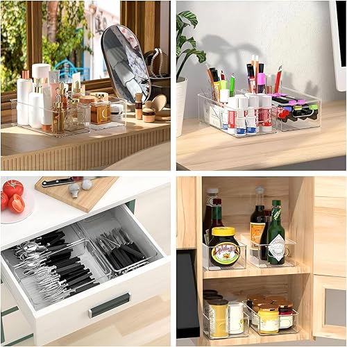 - صُممت صناديق التخزين هذه للاستخدام متعدد الأغراض، وهي مثالية لإنشاء مطبخ نظيف ومنظم، أو أدراج أو خزائن أو مساحة عمل، ويمكن استخدامها أيضًا لتنظيم الأسطح أو أدوات المكياج أو اللوازم المكتبية في أي مكان في منزلك.