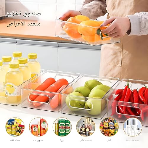 Generic - منظم المطبخ - صناديق تخزين اكريليك مرتبة مع مقابض للثلاجة والفريزر والمخزن للحفاظ على الطعام منفصلاً بشكل أنيق وسهل الوصول إليه