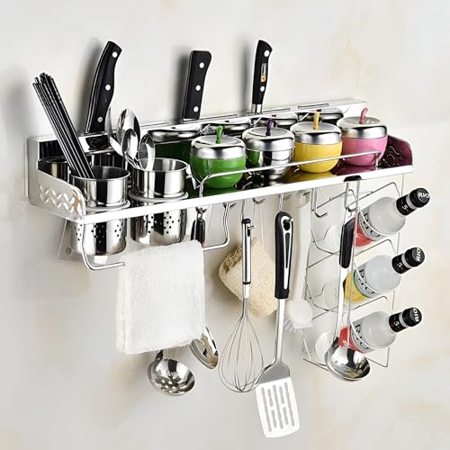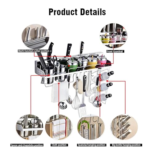 - حوّل مطبخك إلى واحة منظمة جيدًا مع منظم أدوات المطبخ متعدد الوظائف 7 في 1! لا يزيد هذا الرف المثبت على الحائط المصنوع من الستانلس ستيل من المساحة الخاصة بك فحسب، بل يضيف أيضًا لمسة أنيقة إلى ديكور مطبخك، مما يجعله مزيجًا مثاليًا من العملية والأناقة. يضمن تصميمه الأنيق بقاء مطبخك مرتبًا مع كونه جذابًا بصريًا، مما يجعله إضافة أساسية لأي مساحة للطهي.