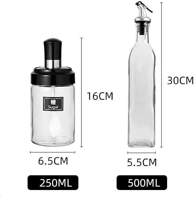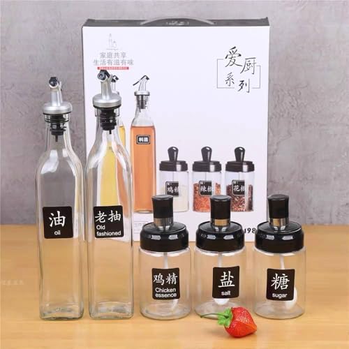 Generic - طقم أدوات تنظيم المطبخ 7 قطع زجاج لتخزين التوابل والزيوت يشمل برطمانات بملاعق وقوارير زيت وقمع مناسب لمطبخ مرتب | من عام