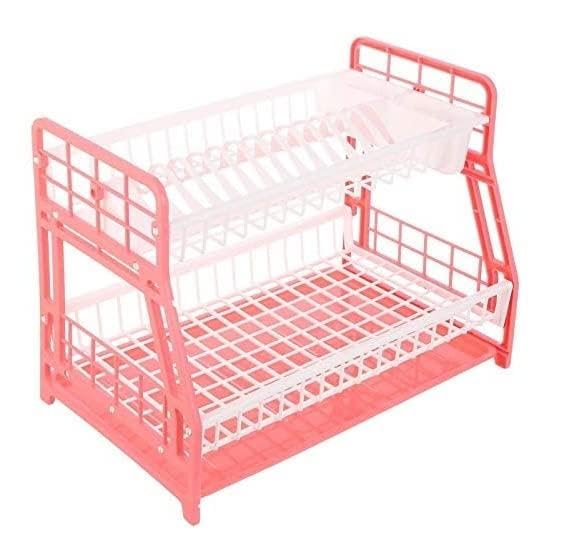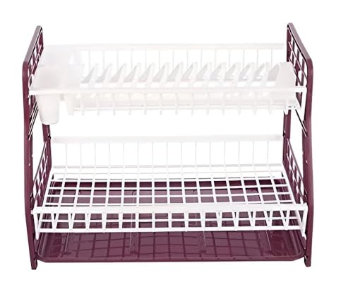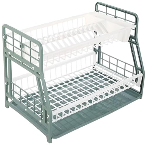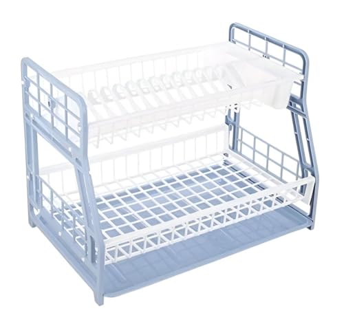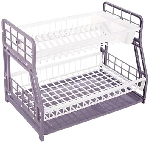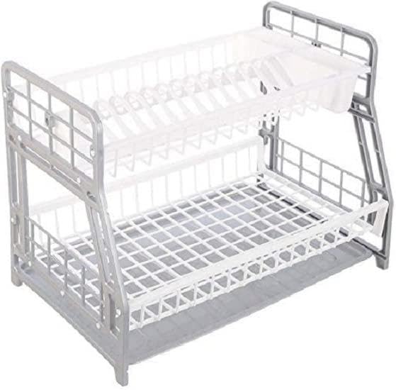 Generic - منظم للمطبخ - رف لحمل الأطباق بلاستيكي متعدد الاستخدامات مع مستويين، مناسب لتجفيف الأطباق والبولات والأكواب، مزود بخطافات جانبية لسهولة التخلص من الماء