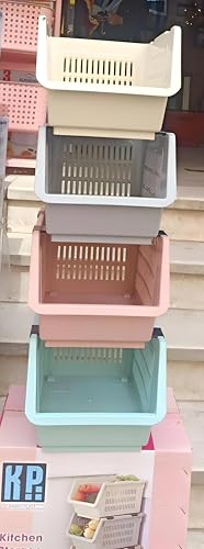 Generic - برج تخزين بلاستيكي للمطبخ - الوان متعددة، 3-4 طبقات، خالي من BPA ومضاد للصدمات، ابعاد 23×27×34 سم، مثالي للاستخدام على الطاولات او الارضيات، بلاستيك عالي الجودة (4 طوابق)