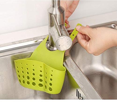 Generic - سلة المطبخ ورفوف الحوض وصناديق تخزين ورف الحوض لأدوات الحمام، باللون الأخضر، سيليكون
