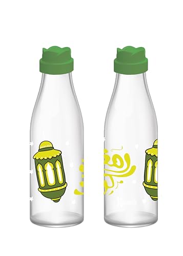 Kitchen's - زجاجة مياه شفافة بغطاء اخضر، تصميم فانوس بنمط الخط العربي، حاوية شرب قابلة لاعادة الاستخدام