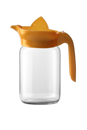 Kitchen's - شفشق زجاجي للمطبخ مع غطاء برتقالي، دورق شفاف للمشروبات وحفظ السوائل بمقبض مريح وتصميم عصري