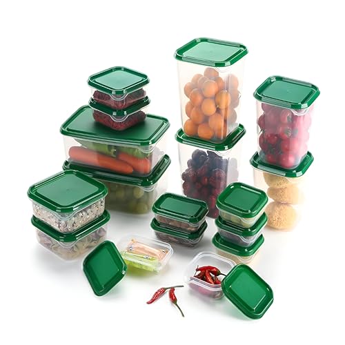 - تحتوي هذه المجموعة الشاملة على 17 حاوية محكمة الغلق بحجم دقيق مصنوعة من مواد البولي بروبيلين + تي ار بي + بولي ايثيلين تيرفثالات الخالي من البيسفينول ايه، مما يضمن تخزين طعام آمن وطويل الأمد بدون مواد كيميائية ضارة.