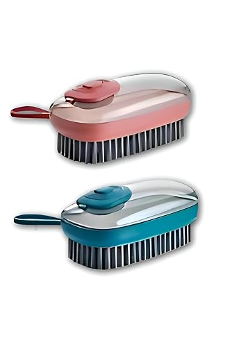 Generic - فرشاة تنظيف للمطبخ - فرشاة تنظيف اوتوماتيكية لتوزيع الصابون مع اسفنجة ناعمة، اداة تنظيف منزلية متعددة الاغراض للاطباق والحمام والاسطح (قطعتان)