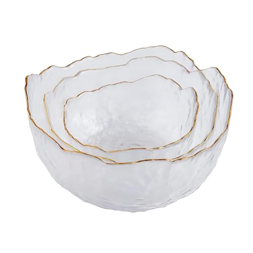 Generic - بولات تقديم للمطبخ - بولات زجاج كبيرة مع حواف ذهبية لخلط وتقديم السلطات والفواكه والمكرونة والوجبات الخفيفة بتصميم أنيق، 3 قطع